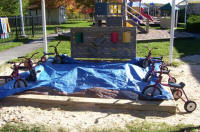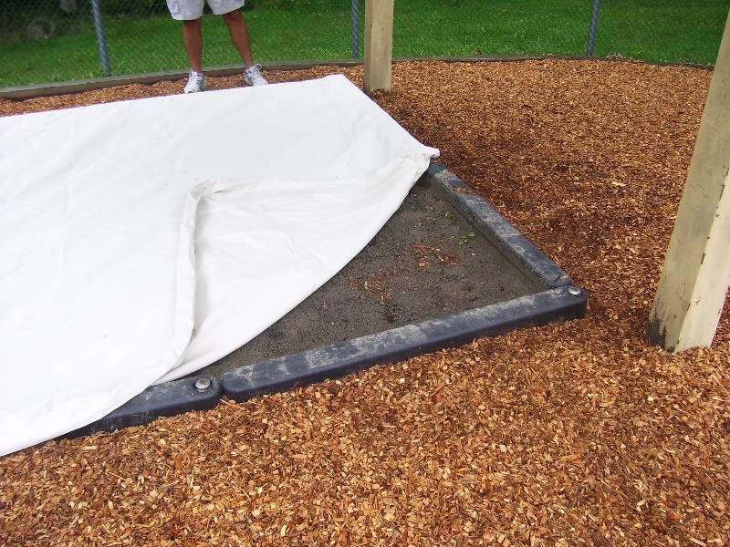We are a family Buisness for over 35 Years. We have been making Custom Sandbox Covers for Government and Child Care Facilities that require their sandbox(s) to pass code. All of our Custom Sandbox Cover(s) are made here in the USA. The Custom Sandbox Cover(s) are made out of Mildew Repellant, Weight: 10oz, Not Water Repellant, and UV Stabilized for 10 years.